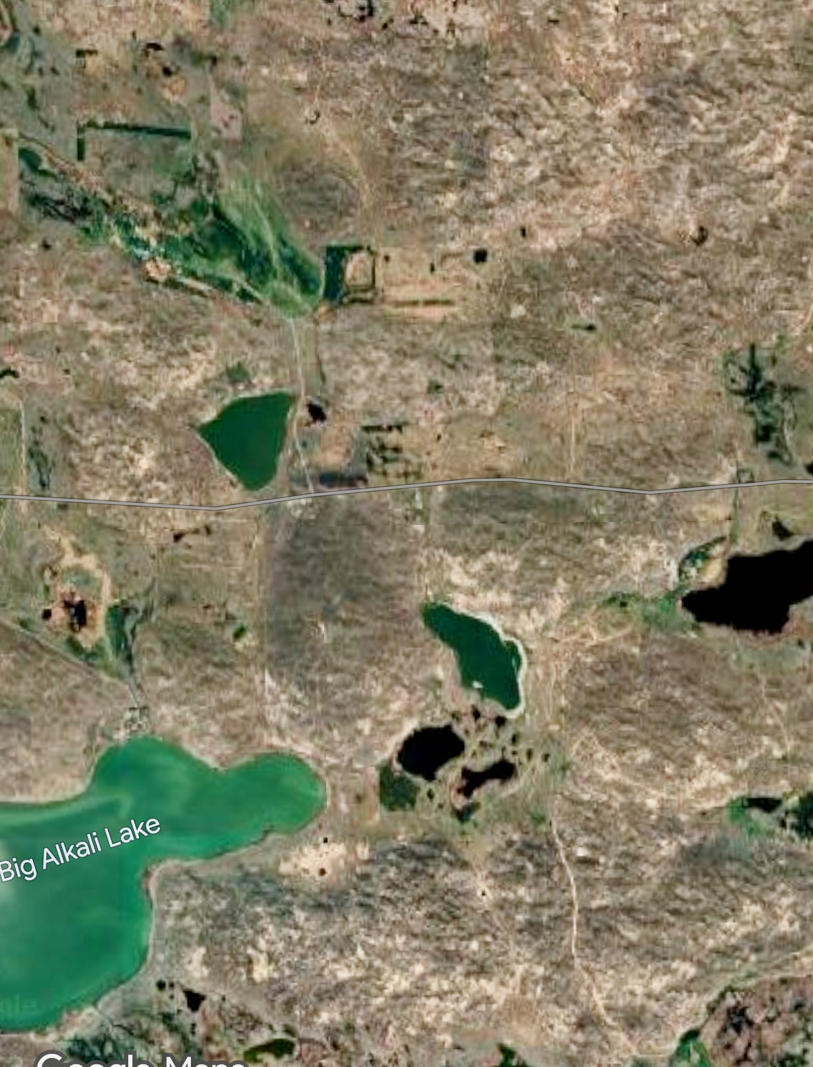 On Google Earth, I find Big Alkali Lake south of Valentine in the rugged sandhills, a million acres of grass-covered dunes, and spring-fed ponds where livestock could drink when the stock tanks froze in winter.