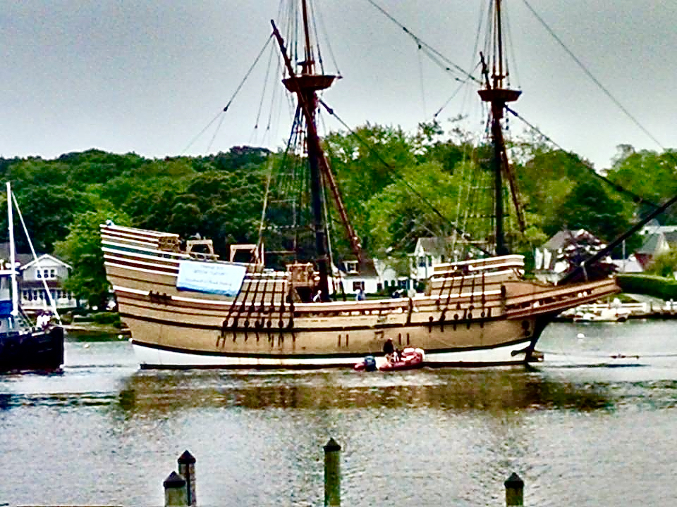 This beloved river has had some remarkable visitors over the years. My first winter here, I shrieked with joy at the sight of a shiny, black head popping up right in front of my window. A curious young seal was larking about only a few feet from me. I’m sure my heart skipped a beat. There are other visitors, too. I have loved the arrival of The Mayflower from Plymouth, MA as she journeys on her way to rehabilitation stints at the Seaport. She’s here now for an extended stay.